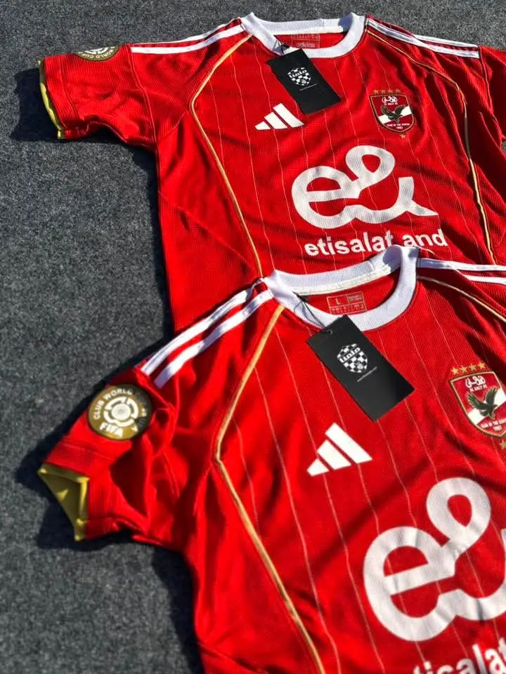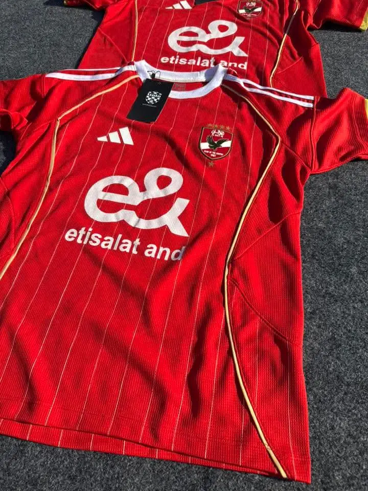 التصميم: أحمر ملوكي بخطوط ذهبية ولمسات بيضاء، وشعار الأهلي مطرز بجودة عالية.
